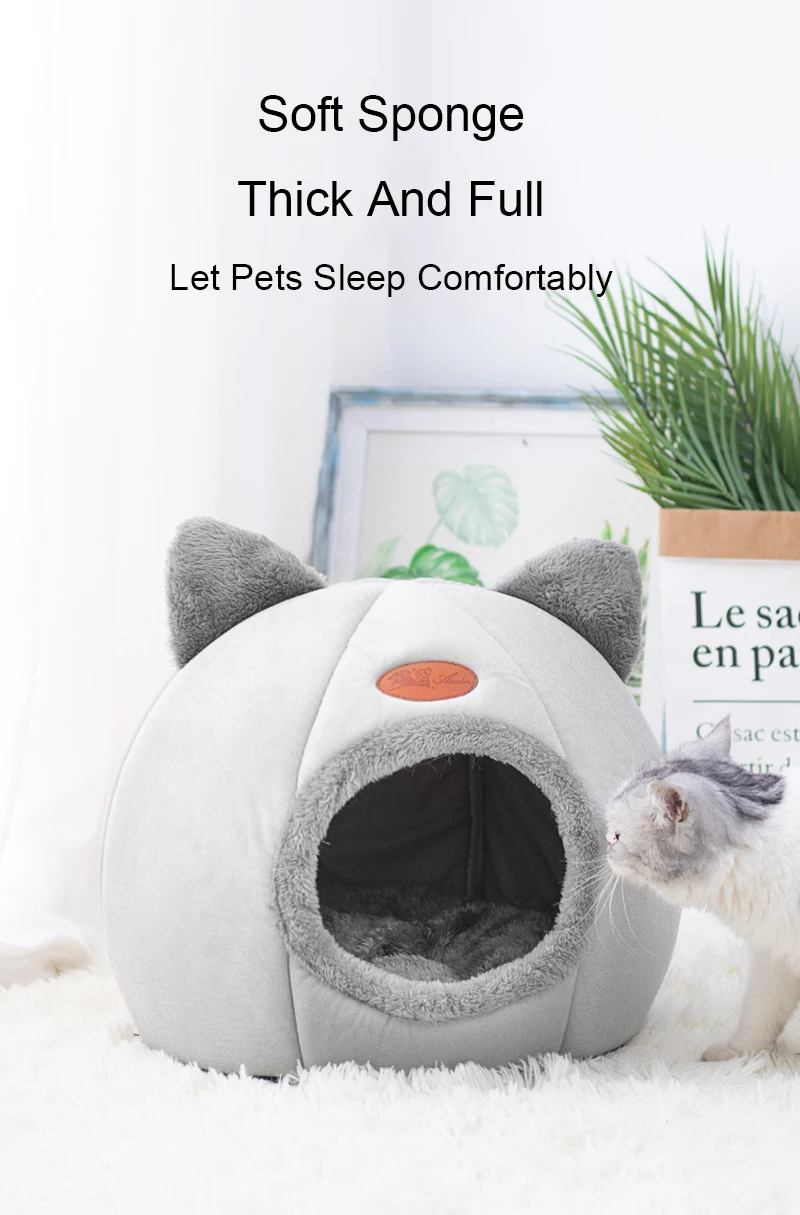 Removable Cat Bed Winter Warm Cat house Stuffed With PP Cotton For Pet Cat Beds & Mats With Non-slip Bottom