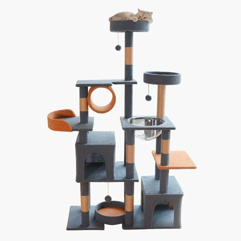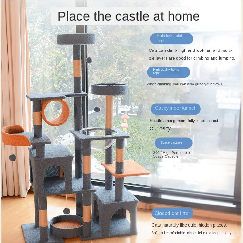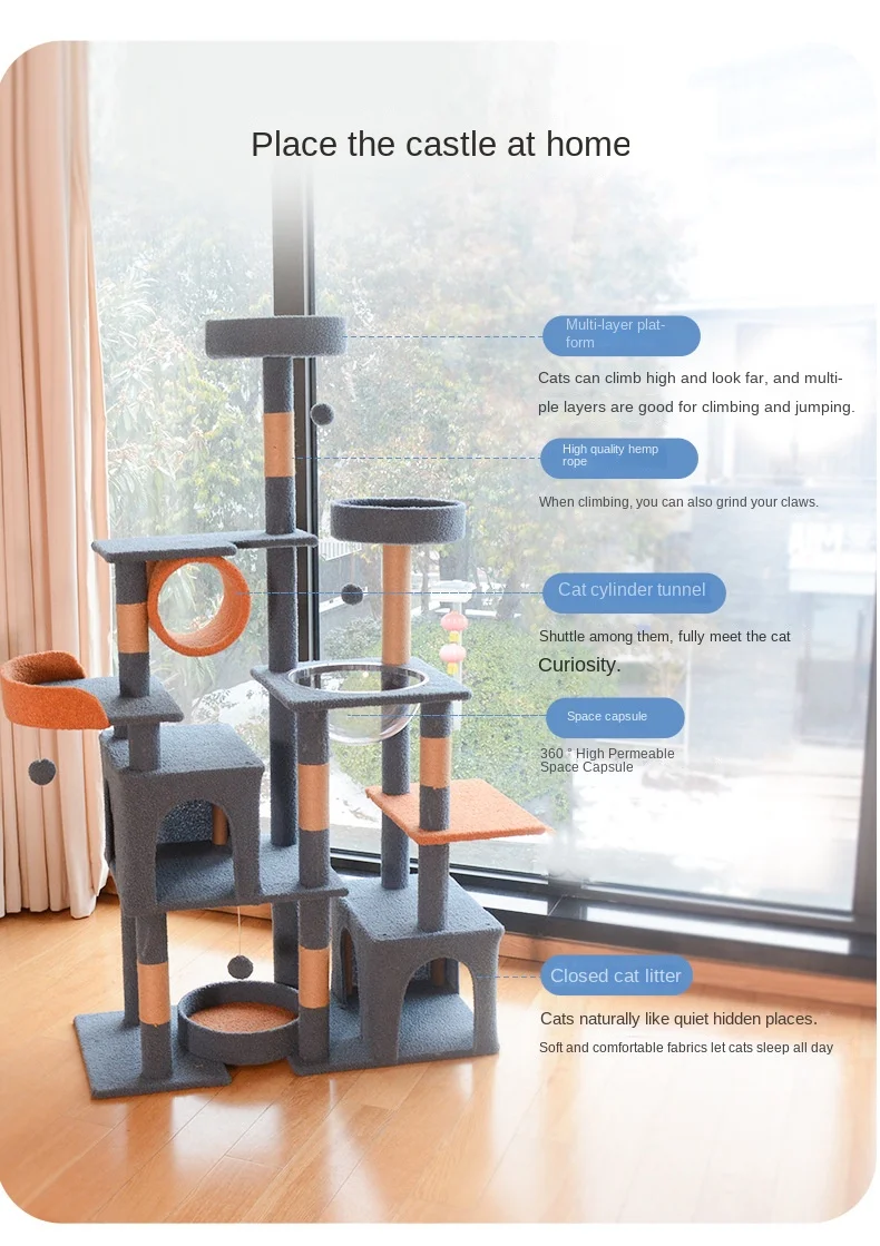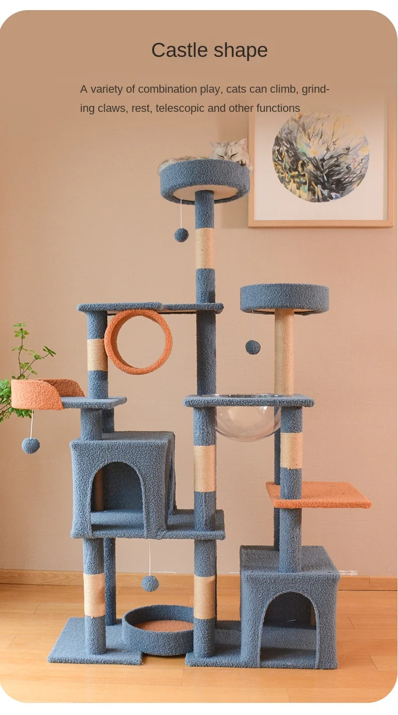 A luxurious multi-level cat tree designed like a royal castle, offering plenty of climbing, scratching, jumping, and cozy resting spots. Perfect for keeping your feline entertained and happy while adding a stylish touch to your home.
