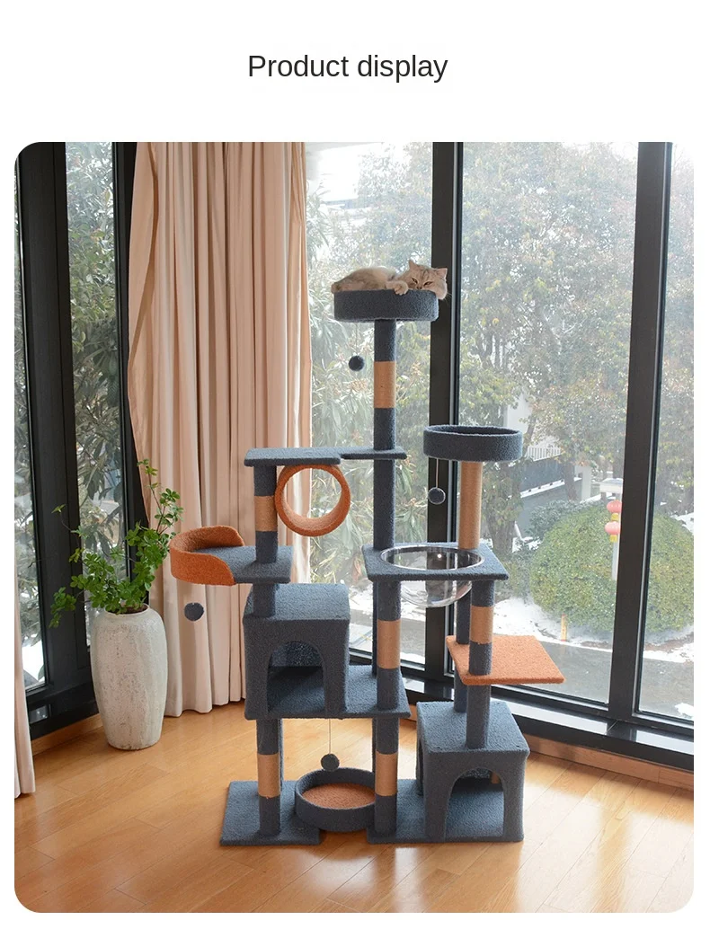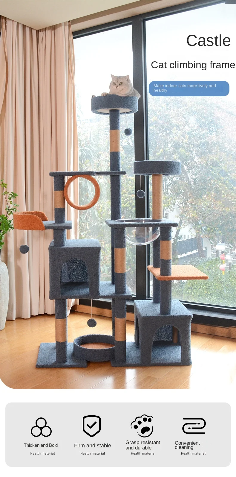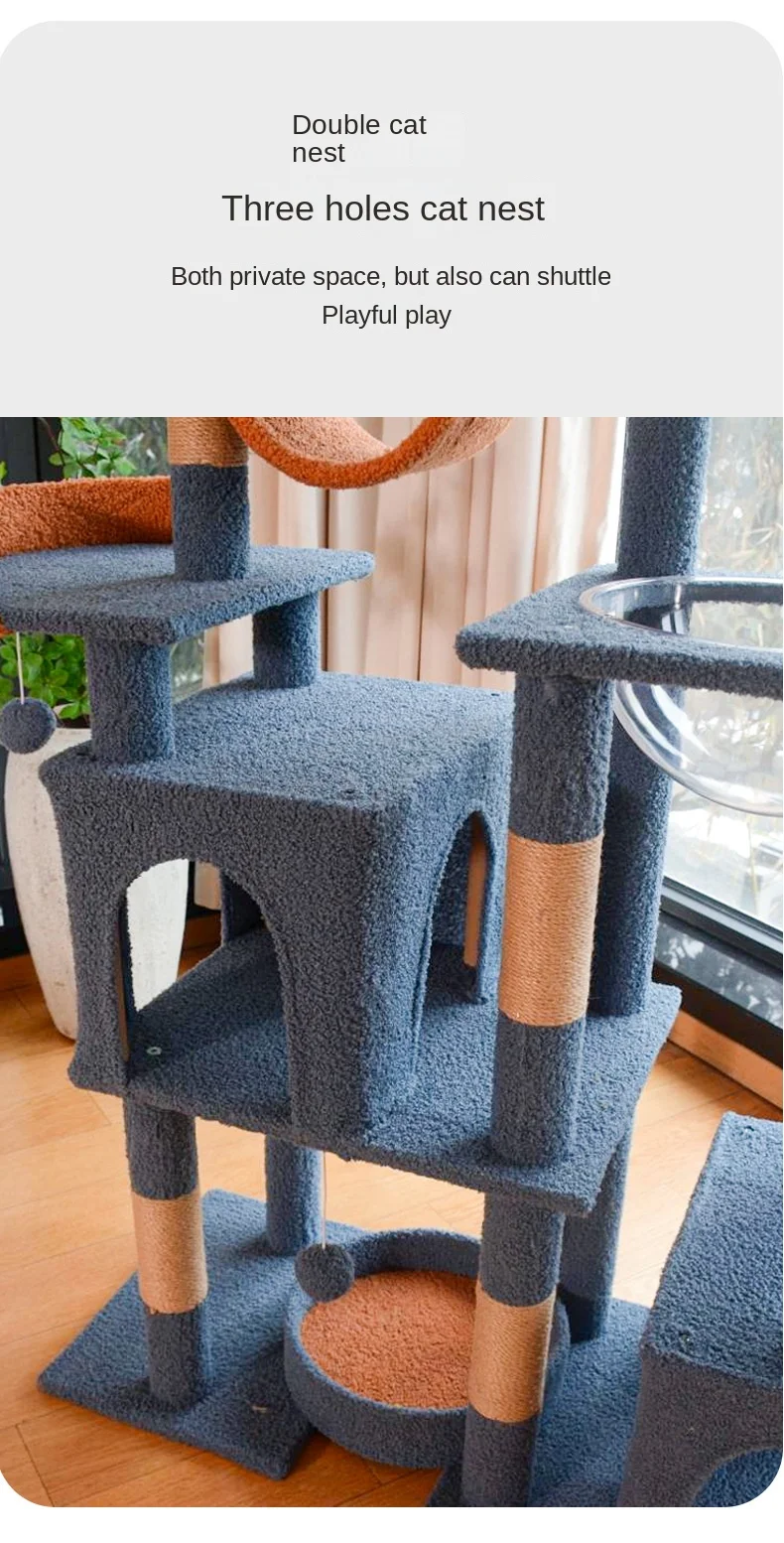 A luxurious multi-level cat tree designed like a royal castle, offering plenty of climbing, scratching, jumping, and cozy resting spots. Perfect for keeping your feline entertained and happy while adding a stylish touch to your home.